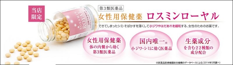 ロスミンローヤルは、シミ・そばかす・小じわへの効果が認められた第3類医薬品です。